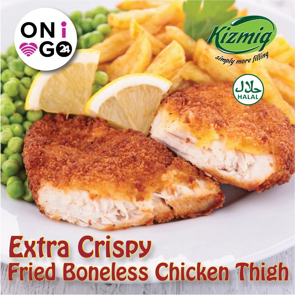 Order yours today and experience the deliciousness of premium quality Kizmiq Extra Crispy Fried Boneless Chicken Thigh in every bite!
